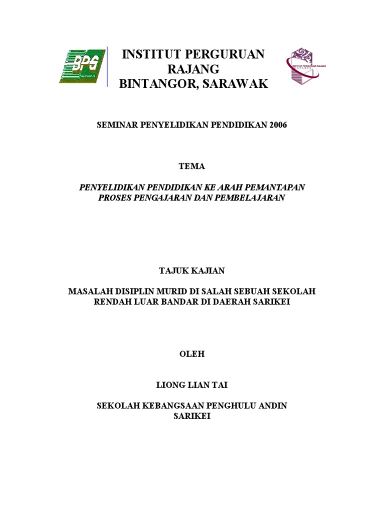 Program yang dapat membantu dalam menangani masalah disiplin di kalangan pelajar sekolah. Semua sekolah rendah dan menengah kerajaan dan bantuan kerajaan 30 mei 2006 37 surat pekeliling ikhtisas bil. 15 pelajar mrsm itu dibuang sekolah selepas didapati memukul 10 pelajar tingkatan dua dengan menggunakan batang penyapu dalam. Isu masalah disiplin pelajar masih lagi hangat diperkatakan di kalangan masyarakat hari ini. Bagi murid sesi petang kelas bermula pada jam 1.30 tgh. Kes buli dan ponteng sering menjadi masalah disiplin utama dalam kalangan pelajar pada masa kini yang boleh menyebabkan prestasi akademik pelajar menjadi semakin merosot. Ini kerana, saban hari ada saja masalah membabitkan disiplin pelajar berlaku di sekolah. Ssdm ini meliputi sekolah menengah dan rendah. Kajian lanjutan juga turut dicadangkan untuk penyelidikan pada masa akan datang. 1.5.6 murid diberi ujian pos program psdm oleh guru kaunseling di sekolah 1.5.7 murid dipantau perkembangannya oleh guru disiplin di sekolah 1.5.8 pemantauan perkembangan diri murid dibuat oleh guru disiplin 1.5.9 laporan dihantar ke ppd/jpn/kpm 1.6 fokus program program pembangunan sahsiah diri dan disiplin murid berfokus kepada: Mengikut statistik, seramai 111,895 murid iaitu 16,849 murid sekolah rendah dan 95,046 murid sekolah menengah didapati terlibat dengan gejala salah laku disiplin di sekolah. Kenyataan tersebut dinyatakan oleh sheldon dan epstein (2013) bahawa masyarakat sering didedahkan dengan peratus salah laku dalam kalangan murid yang rendah dan sekolah berada dalam keadaan selamat. Oleh itu aspek disiplin murid di sekolah haruslah diberi perhatian berat pihak sekolah dan keluarga seperti saranan kementerian pelajaran malaysia, 1981.